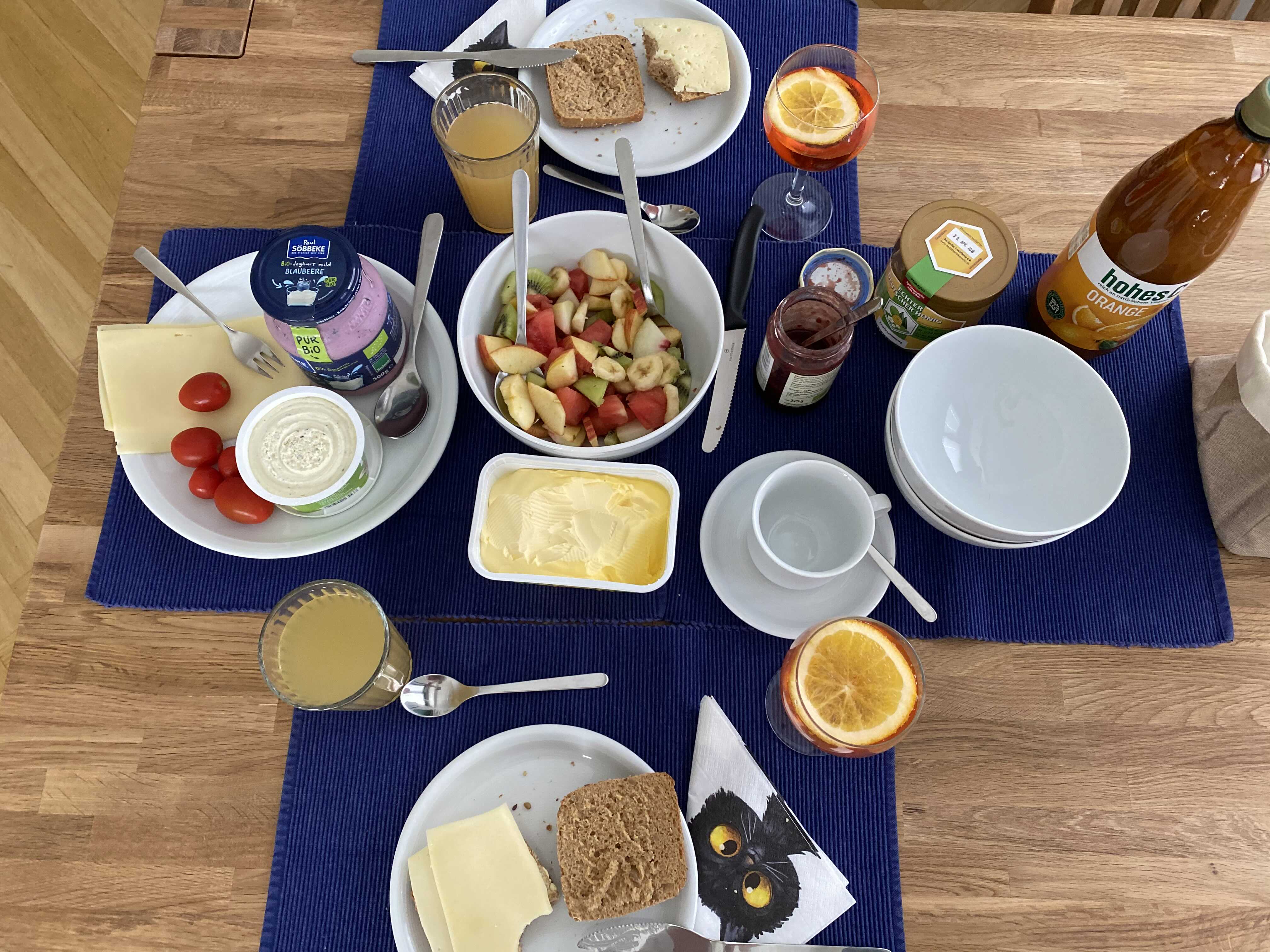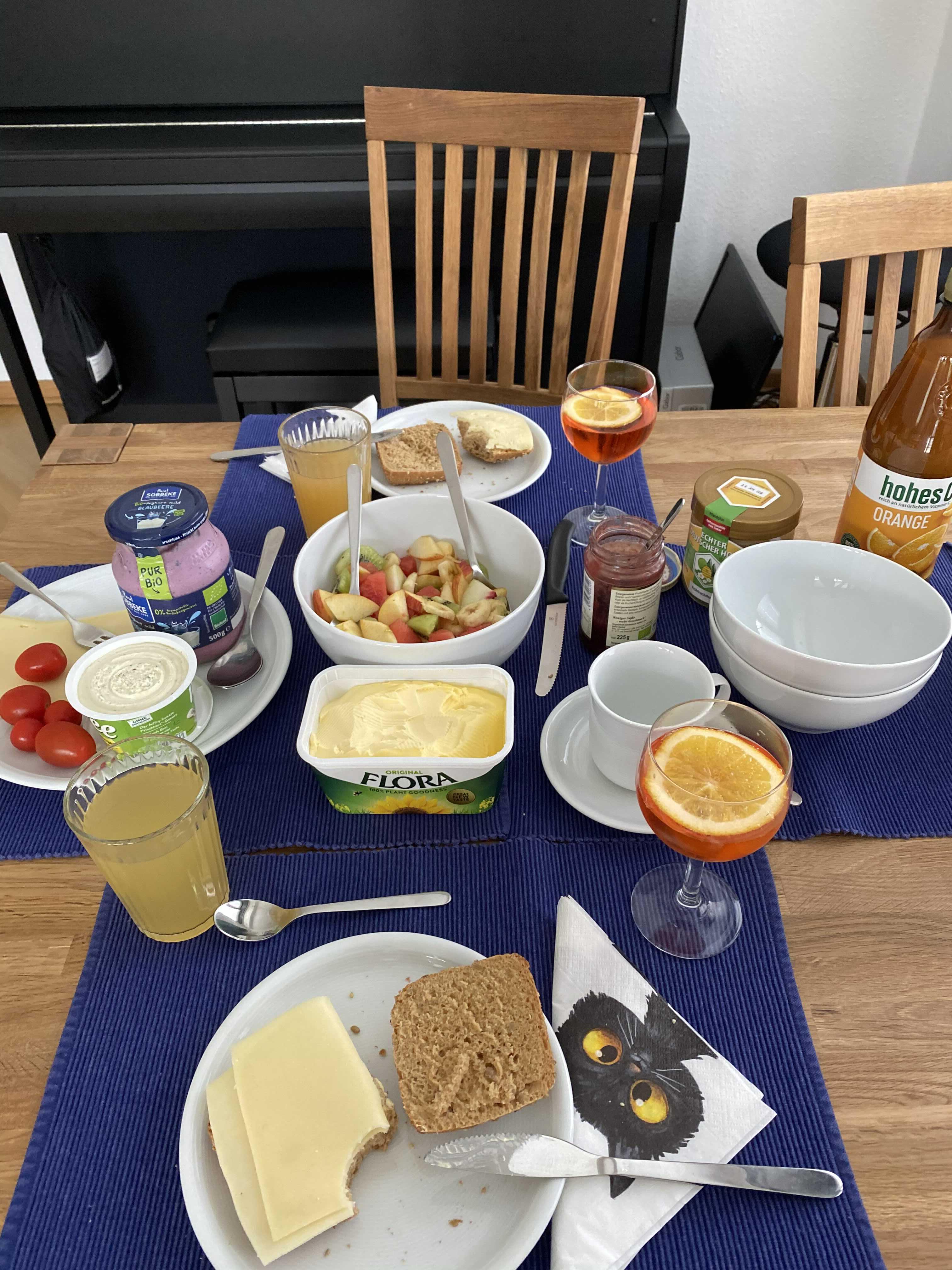 저희는 실컷 수다를 떨려고 함께 만났기 때문에, 식전주 아페롤도 함께했는데요. 실제 독일인들의 아침식사에는 술이 있지는 않습니다.