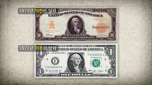 하지만 이 후, 베트남 전쟁으로 달러의 가치가 하락되면서 사람들은 달러의 가치를 의심하기 시작했고, 달러를 금으로 바꿔달라는 요청이 많아졌다. 그러자 금 보유고가 바닥이 나기 시작하면서 달러의 가치는 점점 더 의심되었다. 이에 1971년 8월 닉슨 대통령은 금태환제도를 철폐했고, 이에 금과 무관하게 달러 통화를 생산할 수 있게 되었다. 71년 이후로 달러의 디자인이 바뀌었다. 이전의 달러는 ten dollar in gold coin 이라는 문구가 쓰여 있었다.