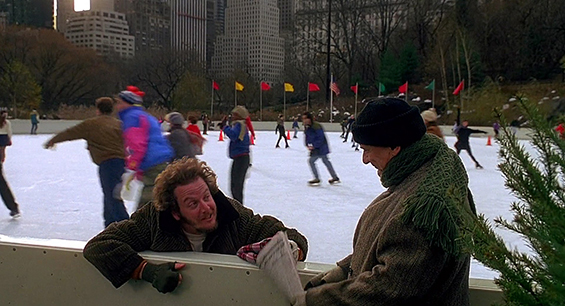 이 록펠러센터의 아름다운 트리 앞에서 케빈이 뒤돌아보자 케빈의 엄마가 등장하며 케빈을 반갑게 껴앉는 재회 장면입니다. 록펠러센터 앞의 아이스링크장을 비롯해서 특히 예쁘다는 뉴욕의 크리스마스 시즌을 제대로 볼 수 있는 장면입니다.