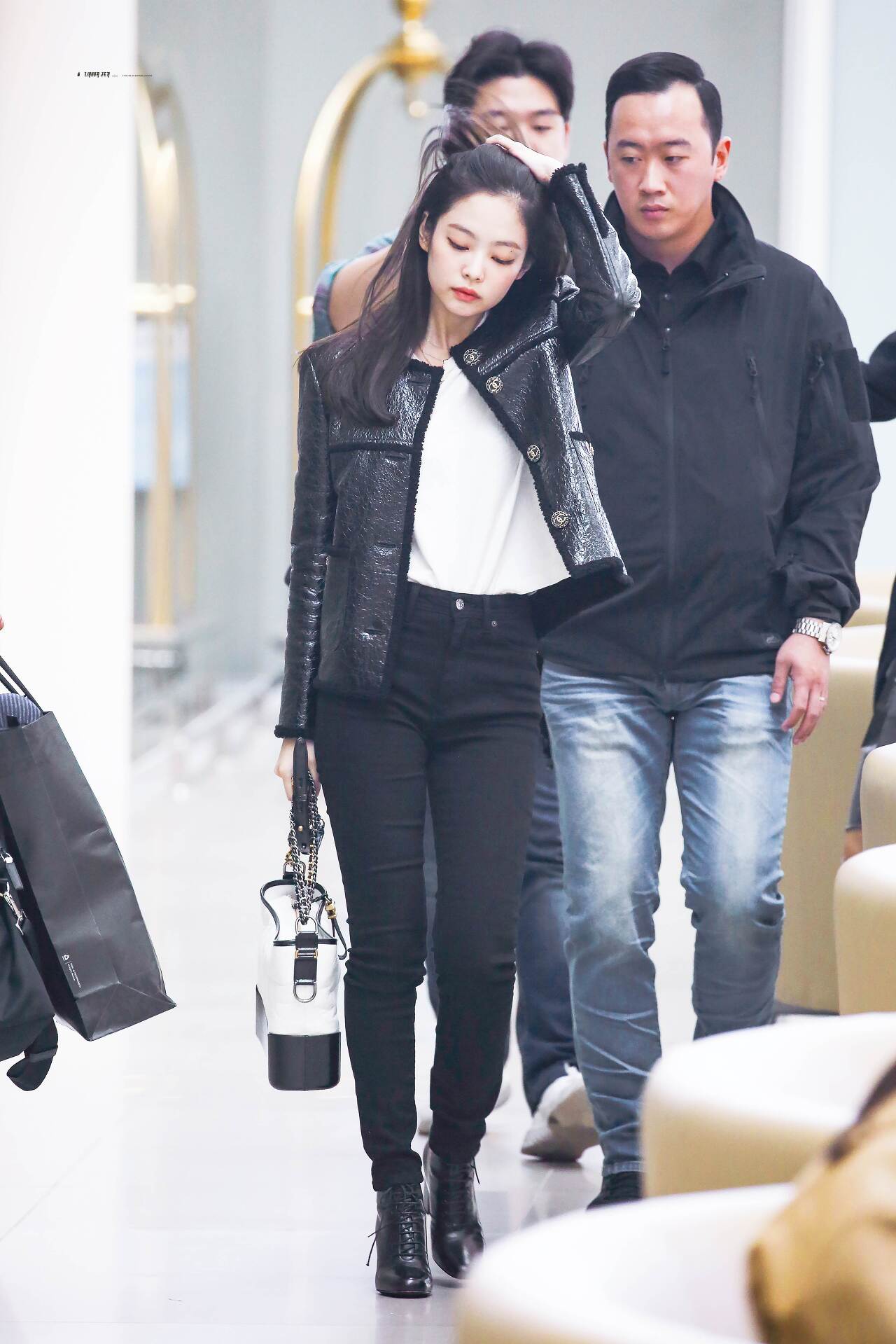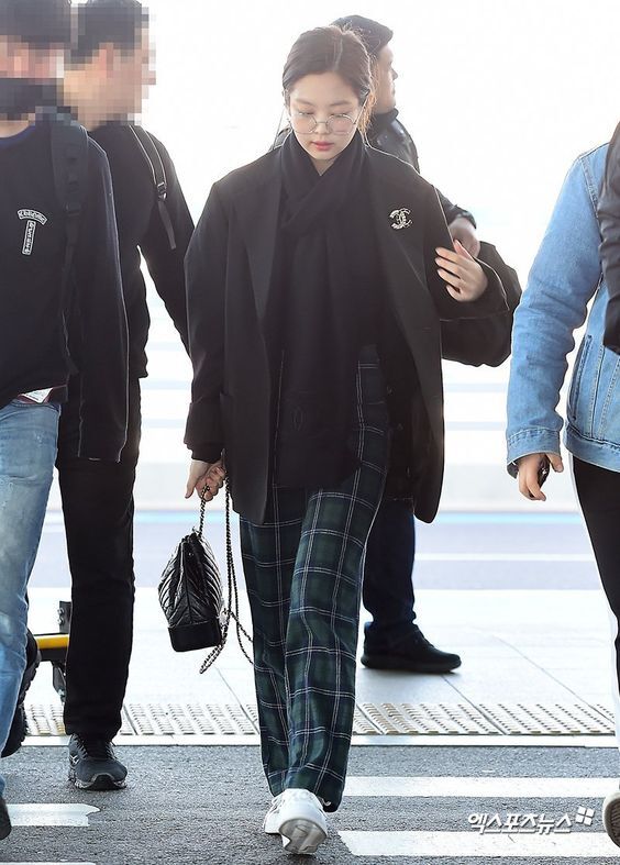 패션센스 있는 제니는 역시 수수하게 꾸민 머리와 선글라스에 매치한 수트도 자연스럽고 스타일리쉬합니다.