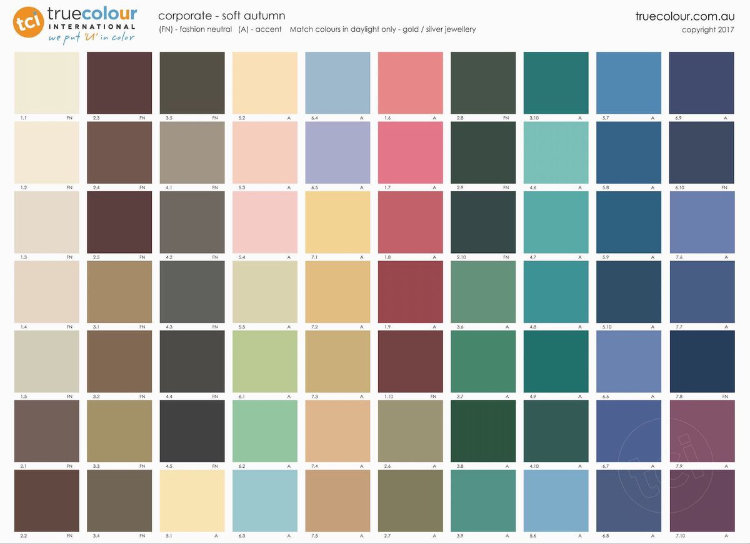 아래 컬러차트는 가을 소프트를 대표하는 컬러입니다. 제니의 맑은 피부톤과 잘 어울리지 않나요?