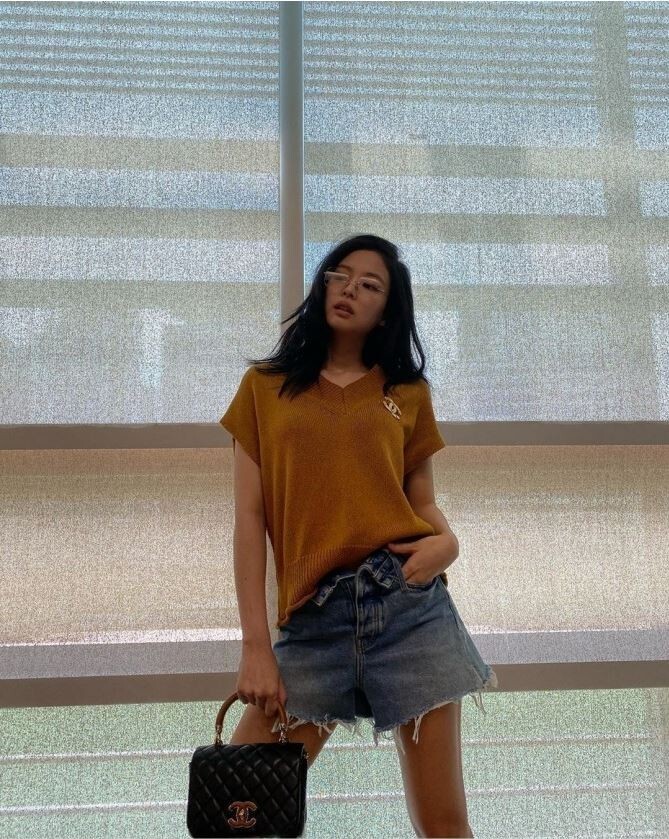 수수하게 찍힌 모습이지만, 굉장히 짧은 크롭탑에 깊게 파인 니트와 가디건이 패션을 과감하게 보이게 하네요. 가을뮤트 분위기 뿜뿜이라 너무 예쁜 것 같습니다. 허리라인을 강조하고 청바지는 조금 넉넉한 패션을 선호하는 것 같아요. 본인의 체형과 컬러를 제대로 활용해서 예쁜 코디입니다. 메이크업도 진하지 않고 조금 누디한 느낌을 강조하고 아이라인에만 명도를 주어 너무 예쁘고 사랑스럽습니다.