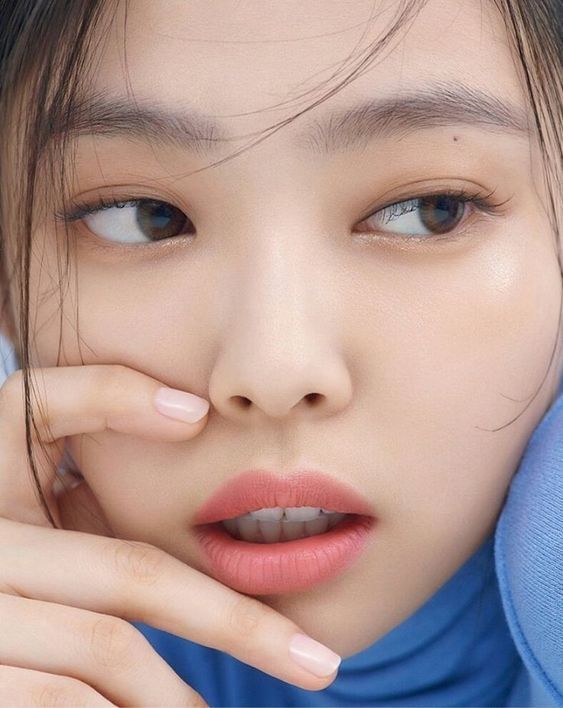 브라운 컬러 헤어에 자연스러운 스타일링, 무화과 컬러의 부드러운 립이 부드럽고 따뜻한 느낌을 주면서 제니 특유의 분위기가 사진에서 뿜뿜 뿜어져 나오네요.