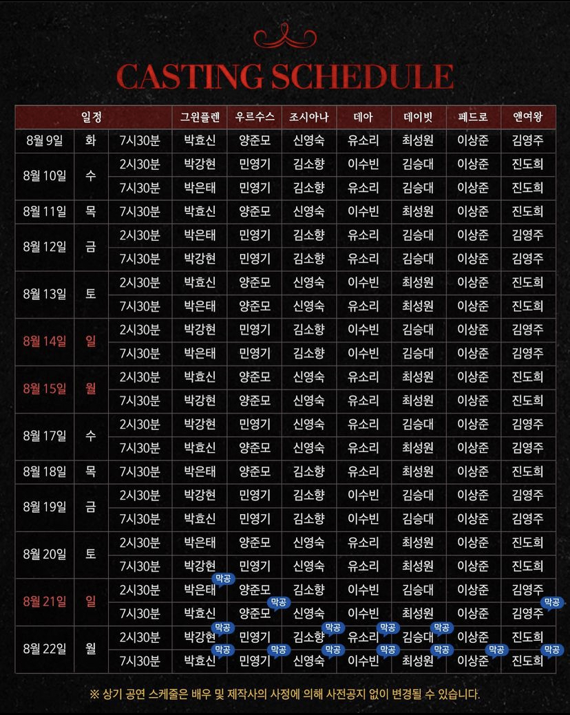 두근두근 대망의 캐스팅 일정을 살펴볼까요?