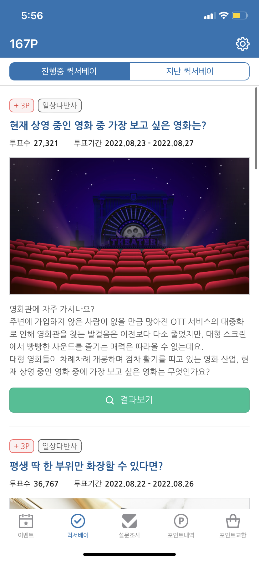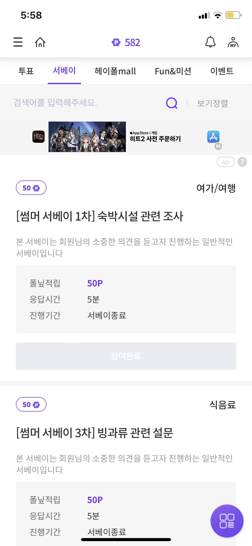 5분이라고 써있지만 사실은 30초컷인 50포인트짜리 설문!! 너무 좋아요