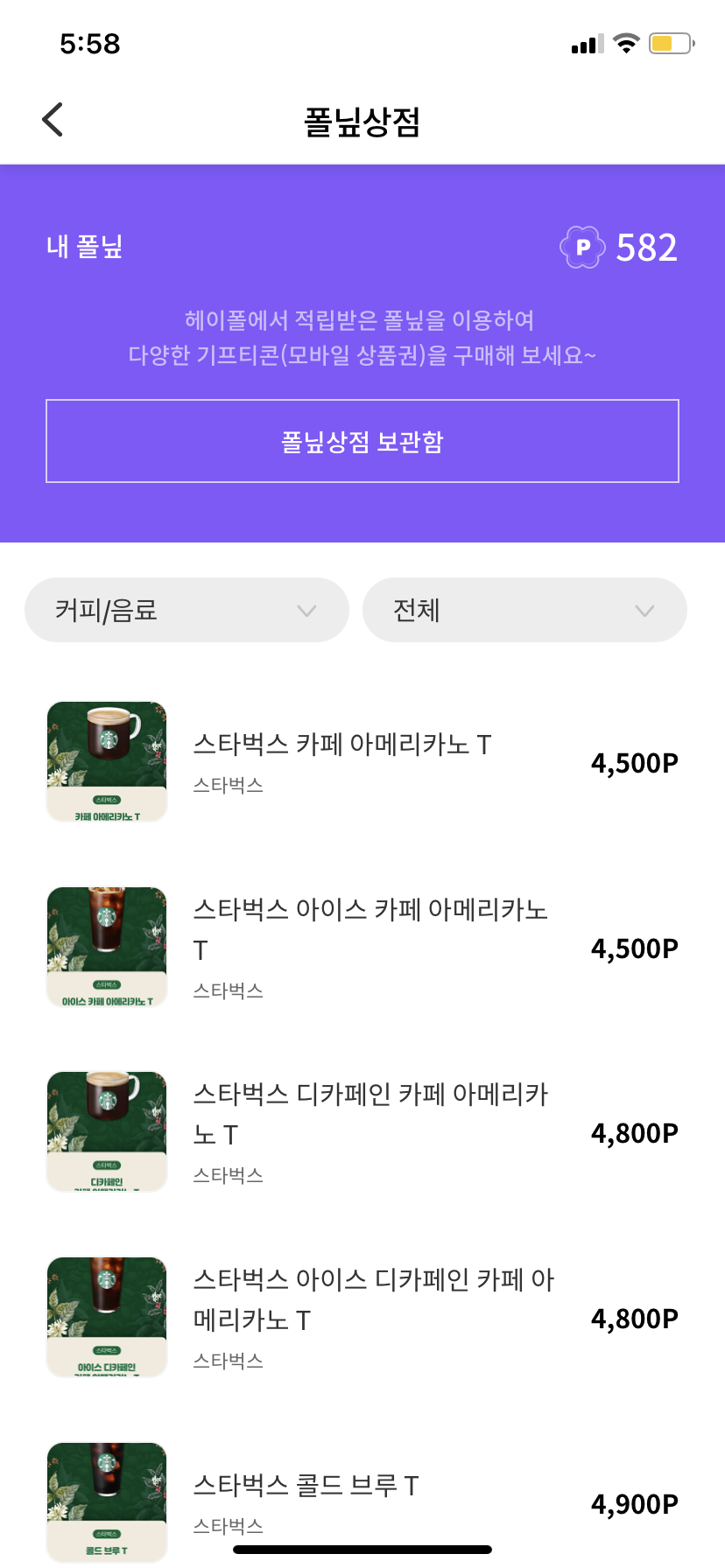 아니면 이렇게 스타벅스 기프티콘으로 바꿔도 너무 좋죠~~ 지금 582포인트 쌓였는데, 언른 4500포인트 모아서 스벅가야겠어용 ㅎㅎㅎㅎ 공짜 커피가 더 맛있잖아용 ㅎㅎㅎㅎ