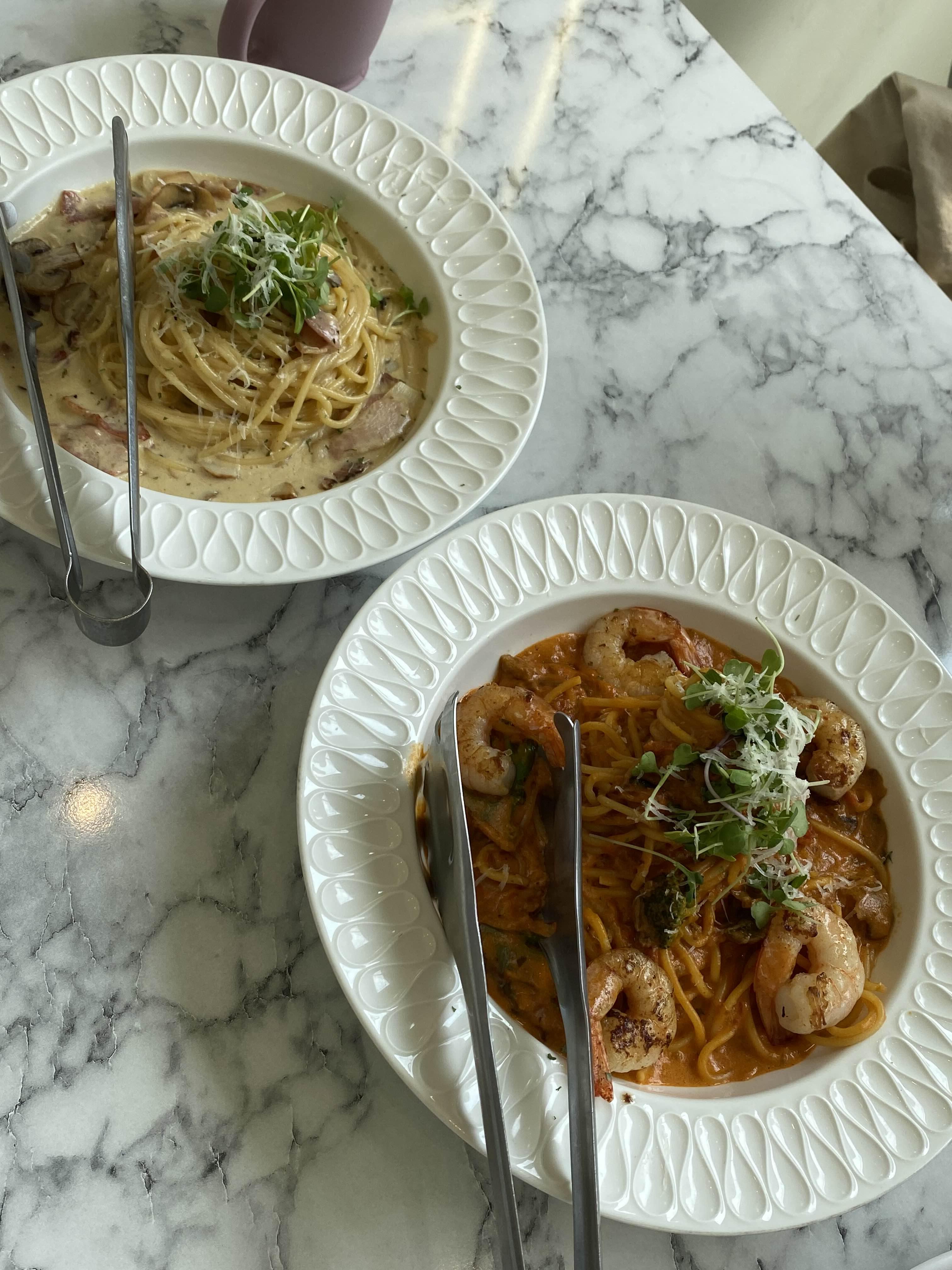 새우로제파스타! 새우가 실하게 들어있었어요.