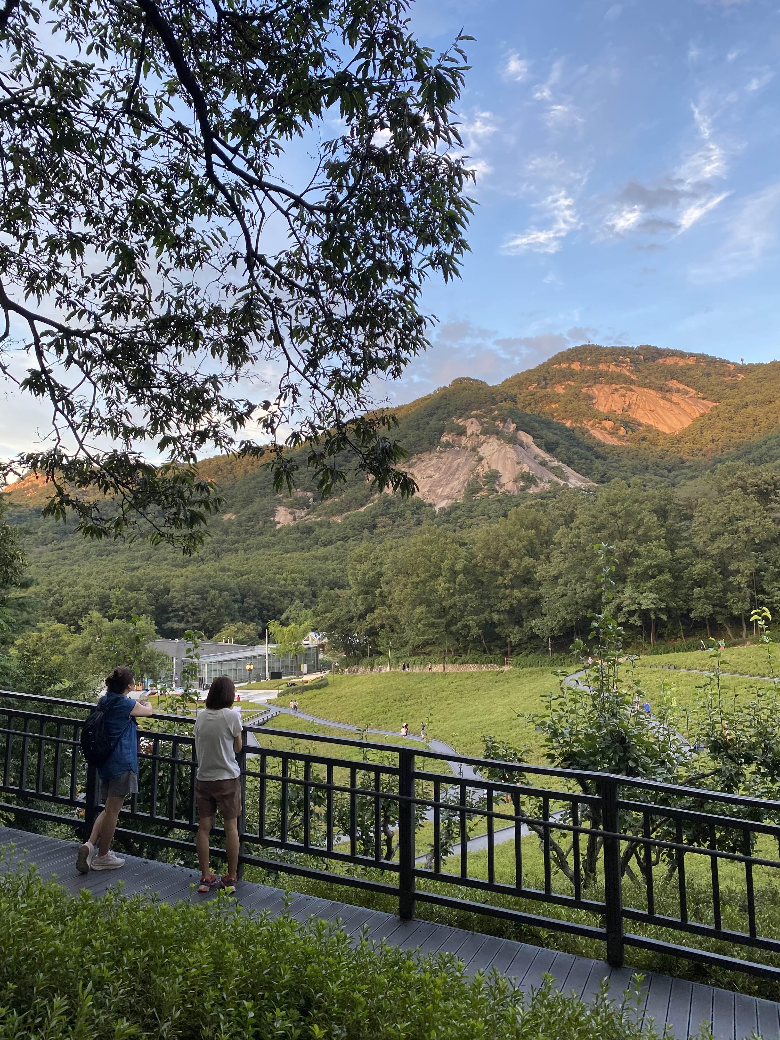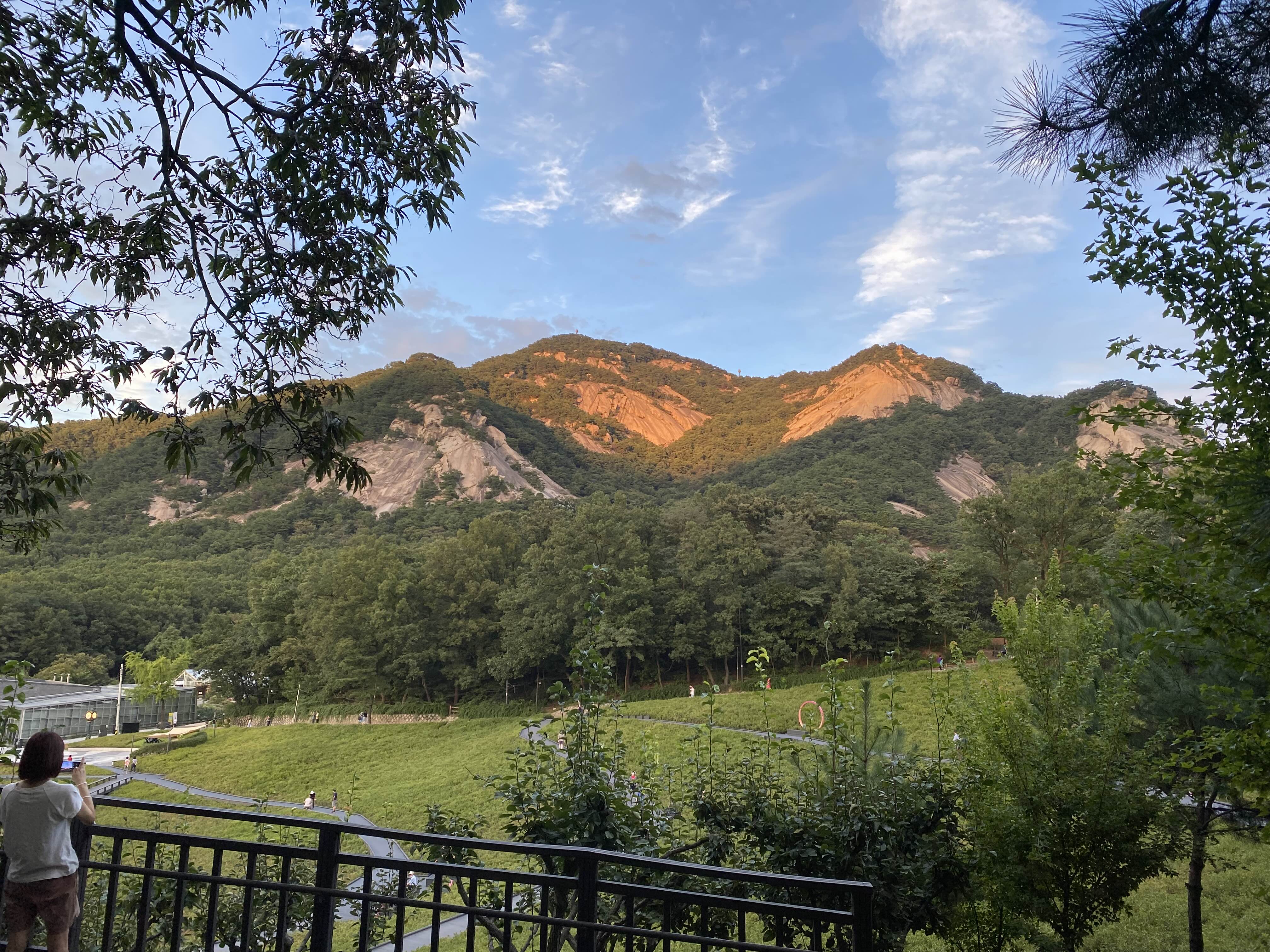 푸른 자연과 노을이 참 멋진 풍경이에요.