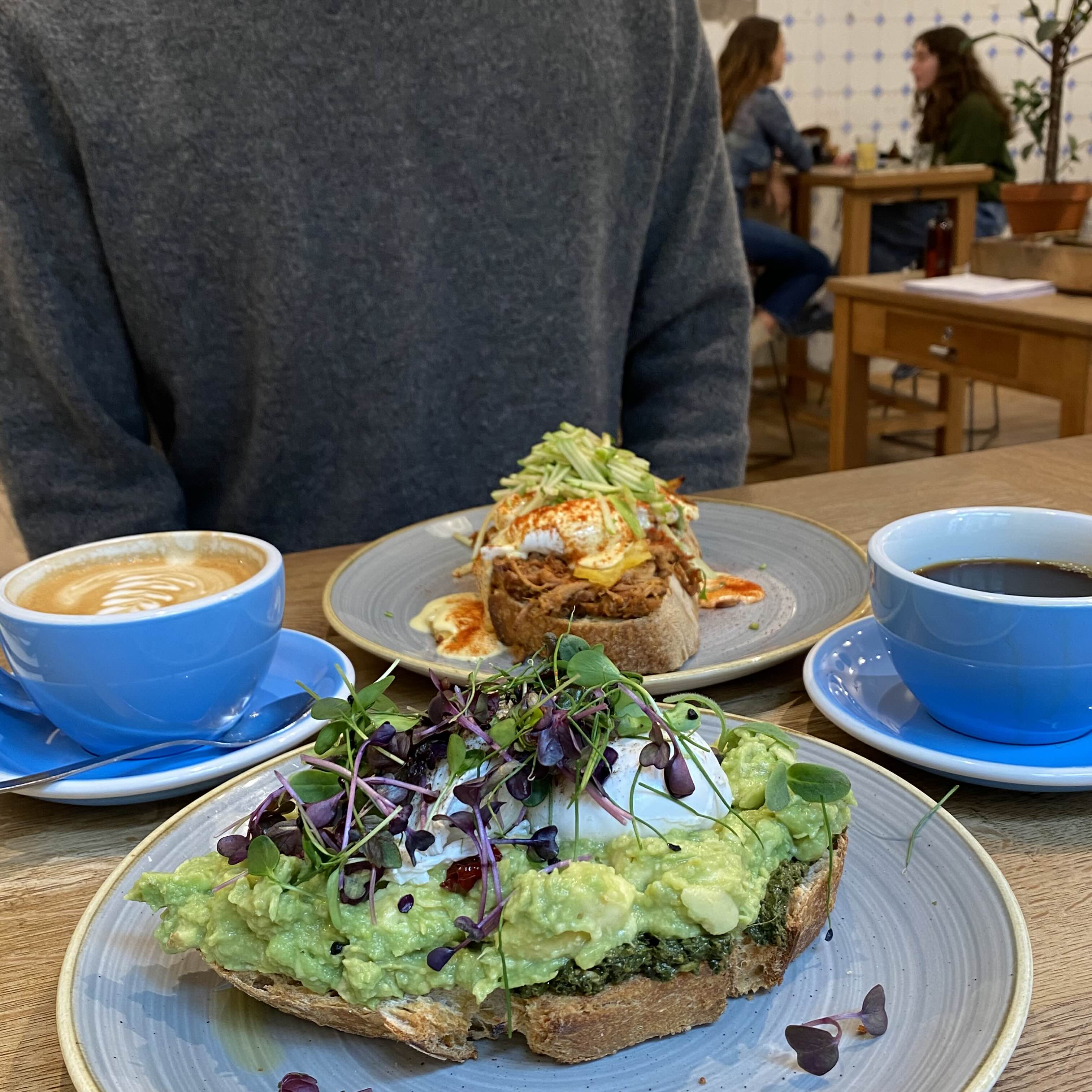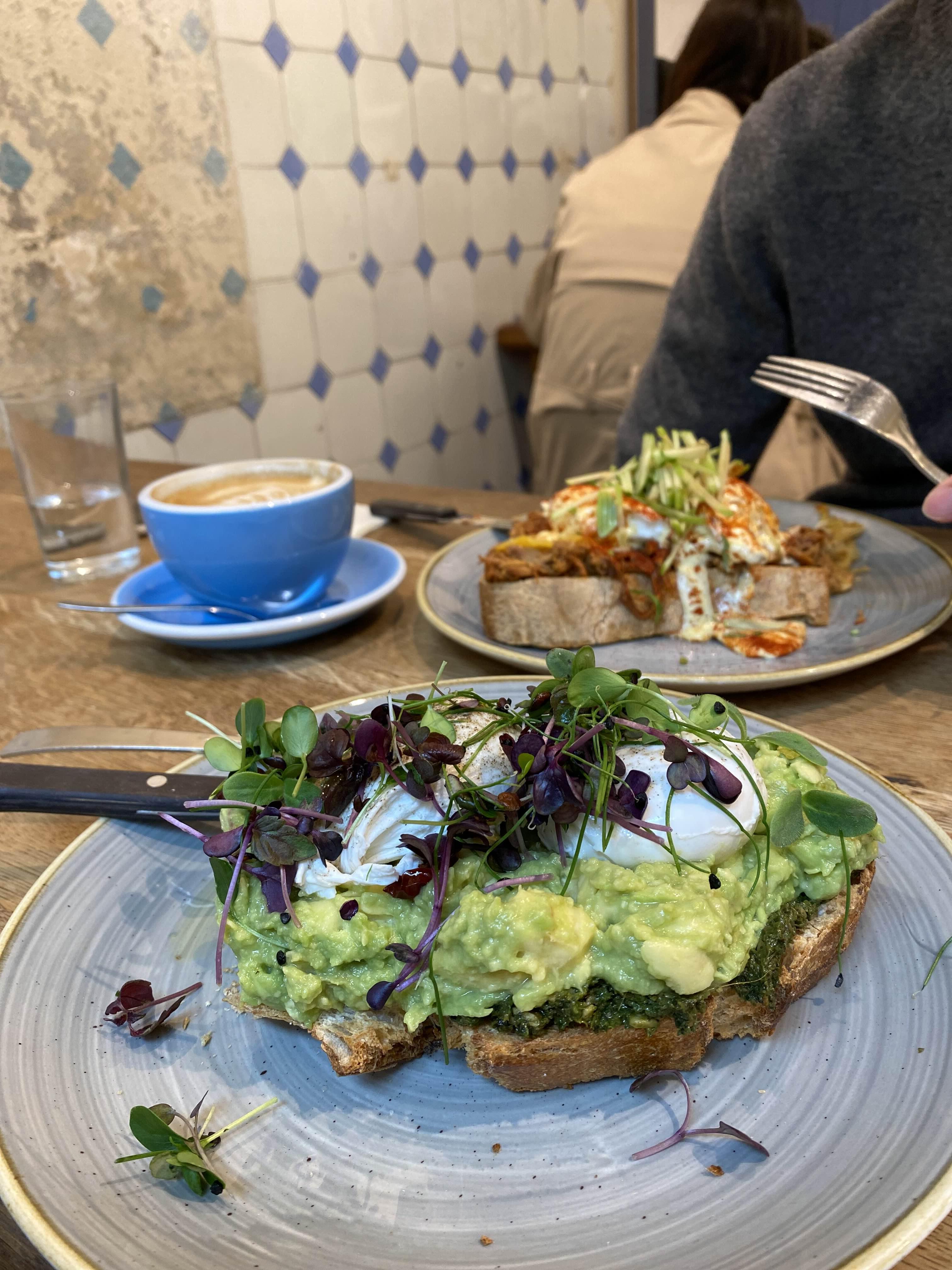 아보카도 토스트는 진짜 아보카도를 아끼지 않았습니다. 빵보다 더 많은 아보카도 산.. 그리고 에그 베네딕트 조합이 너무 부드럽고 고소하고 맛있었어요!