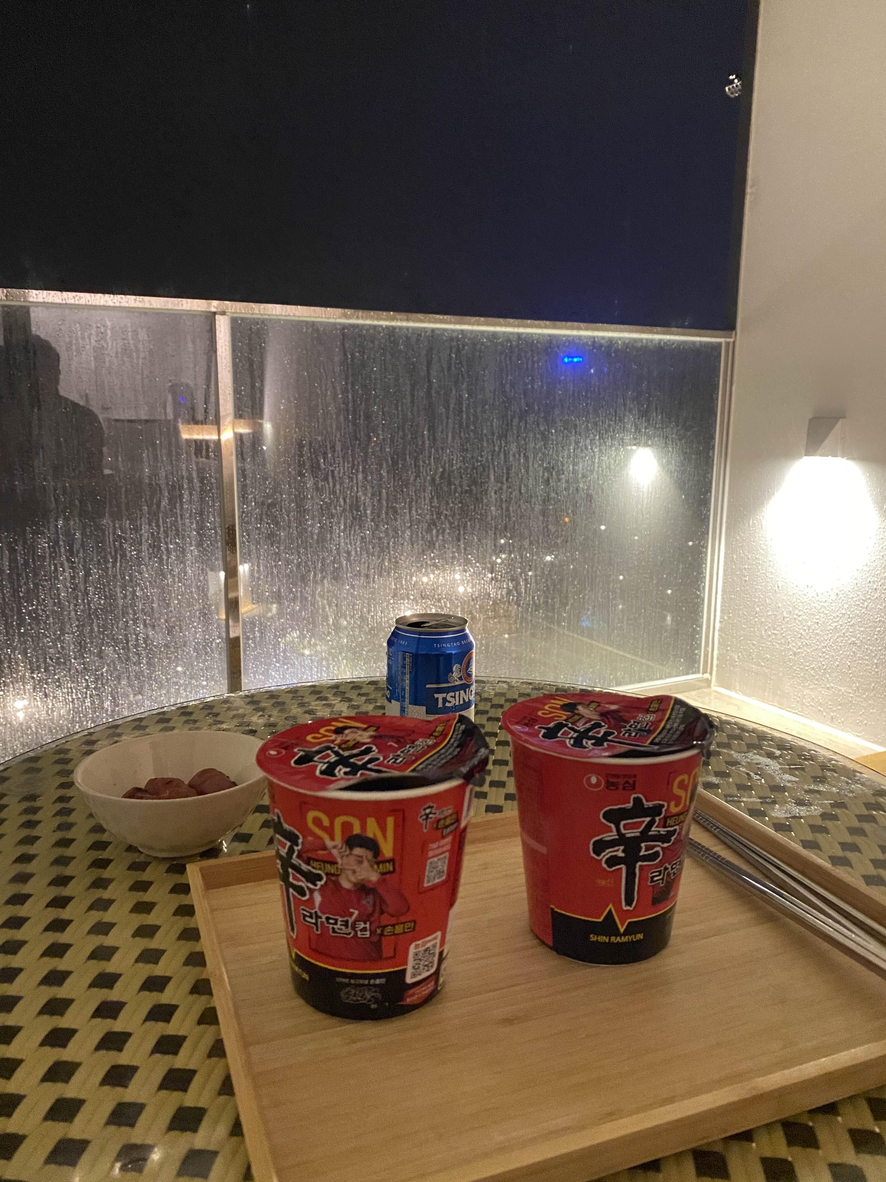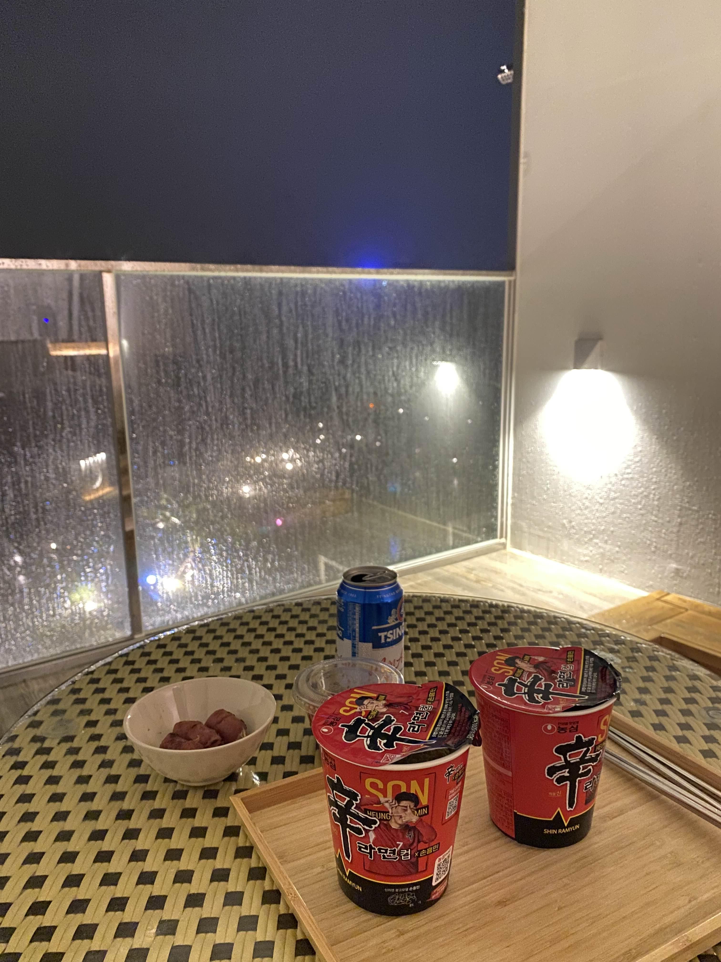 비가 억수같이 쏟아지는데 구경하며 뜨끈하게 컵라면 먹으니 신선놀음이 따로 없네요~~~!