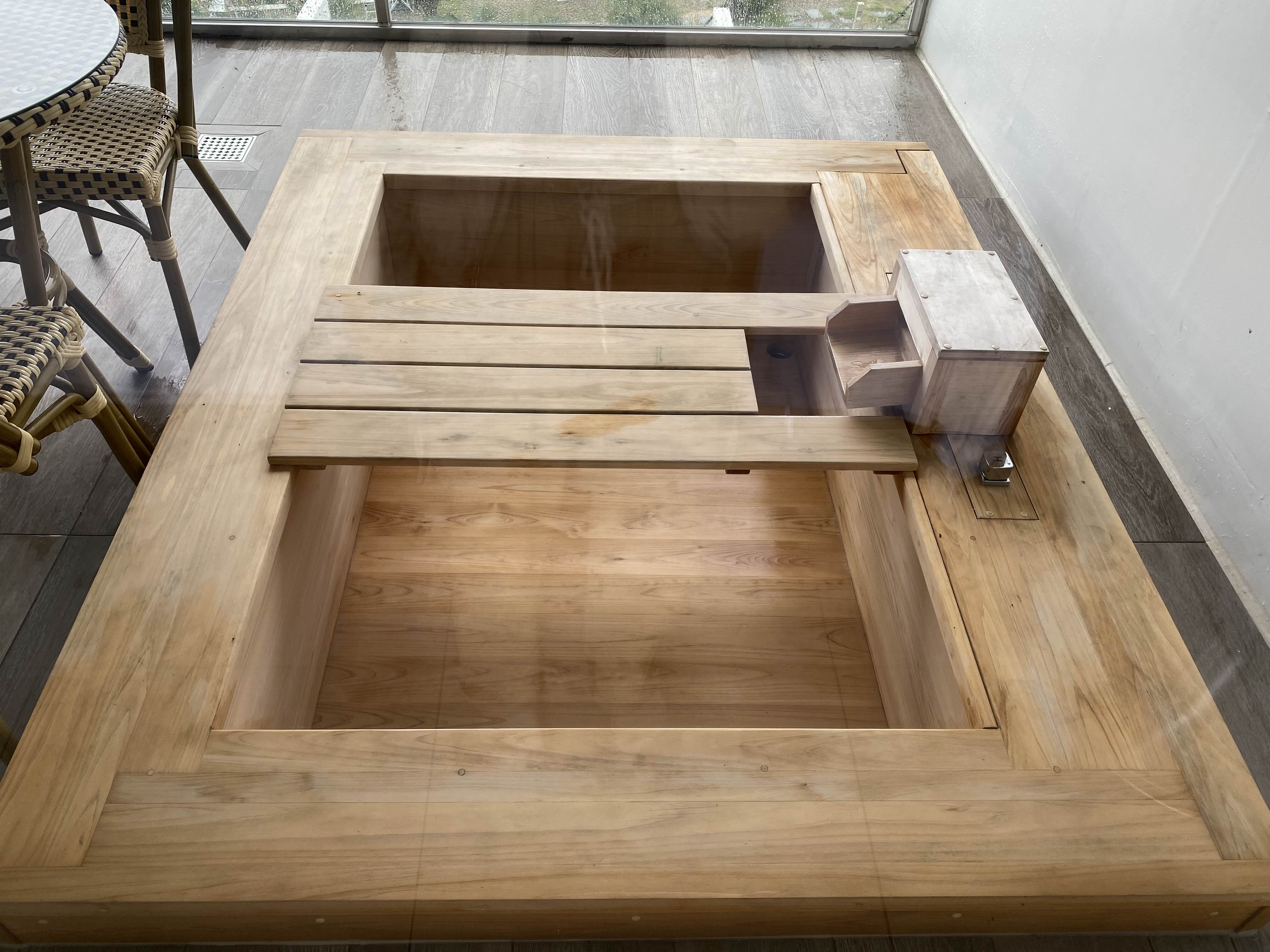 히노키탕!!! 야외공간이라 벌레가 좀 있는데 한번 물 조금 받아서 닦아내고 잘 썼어요.