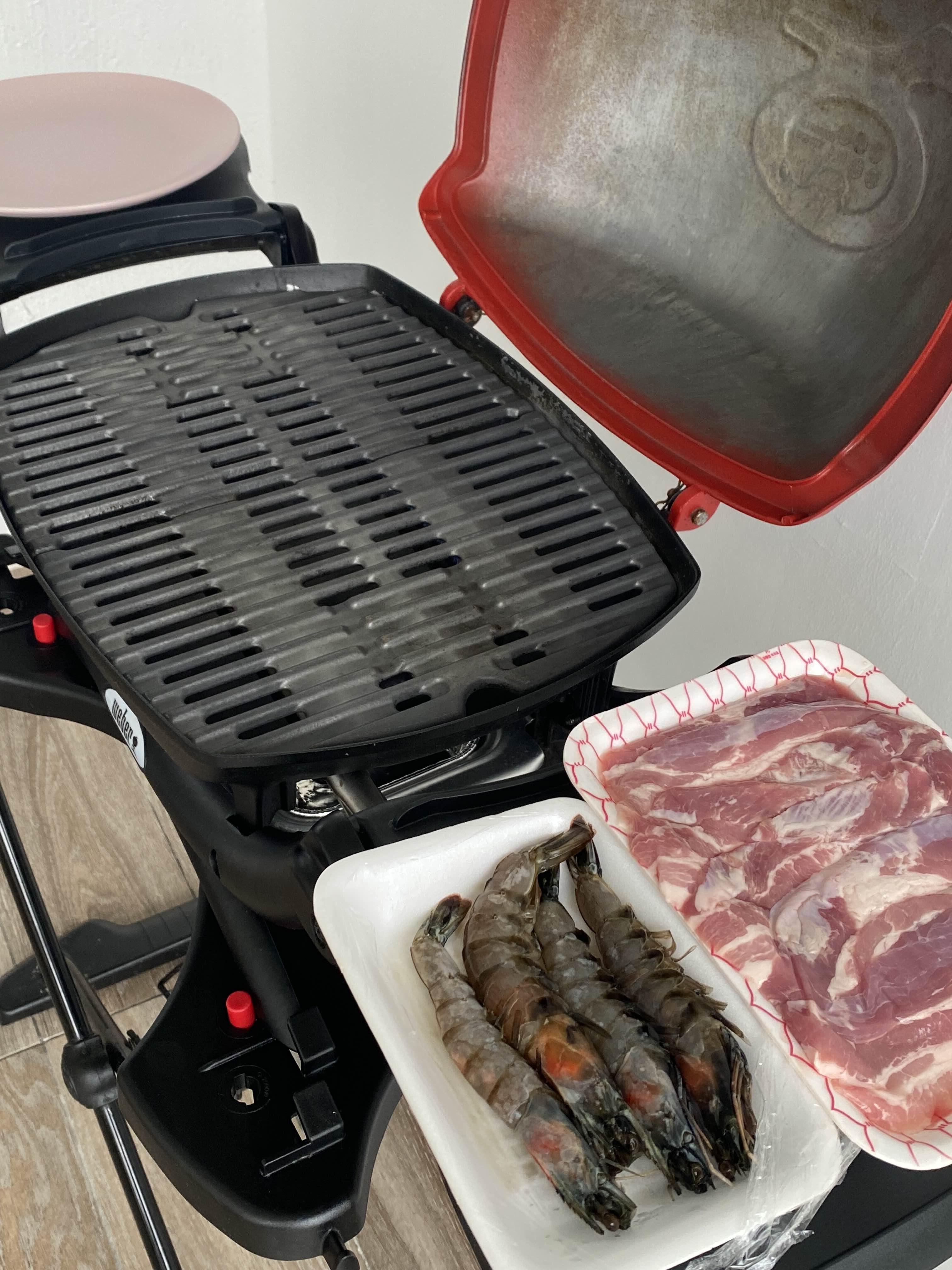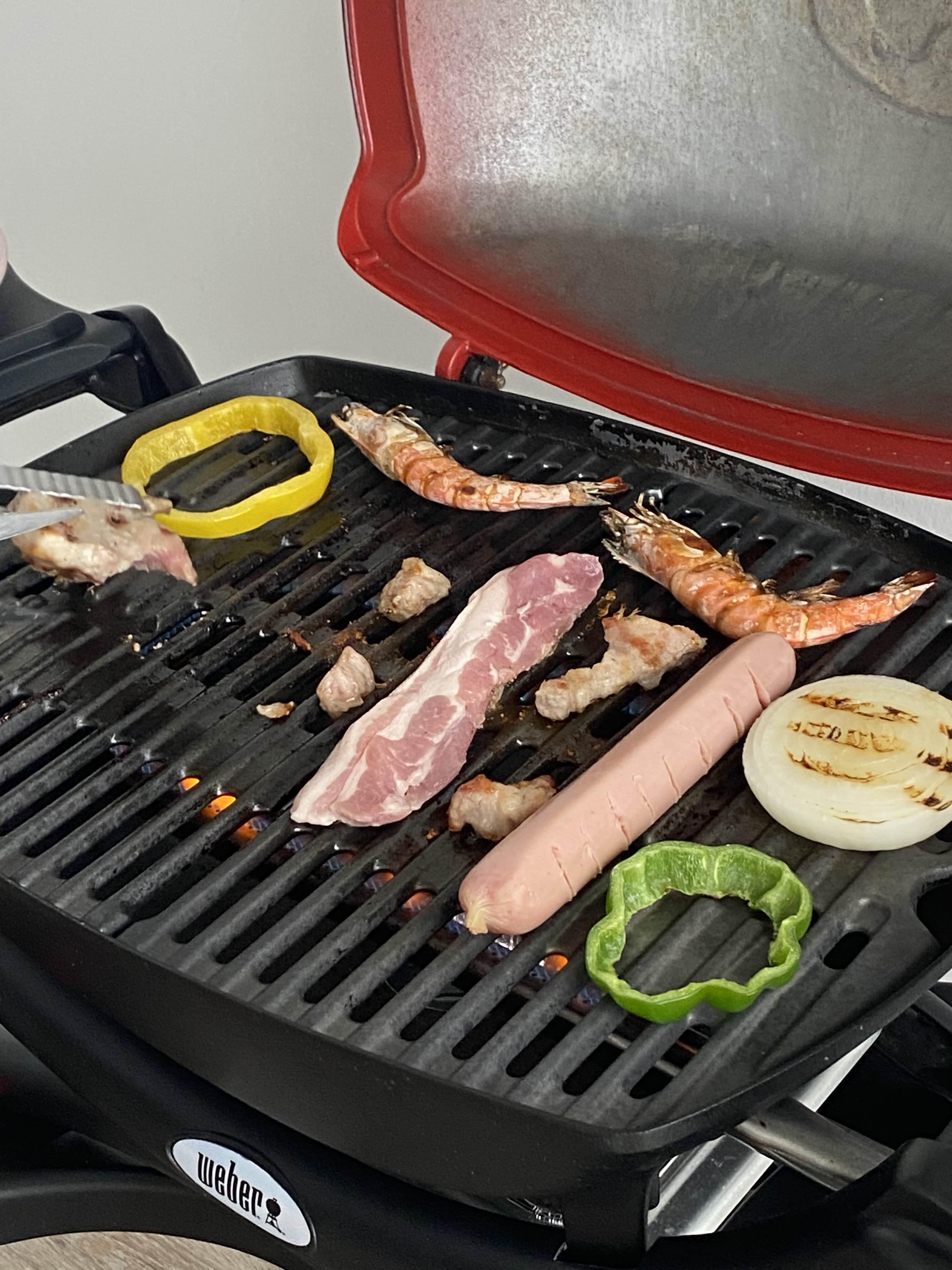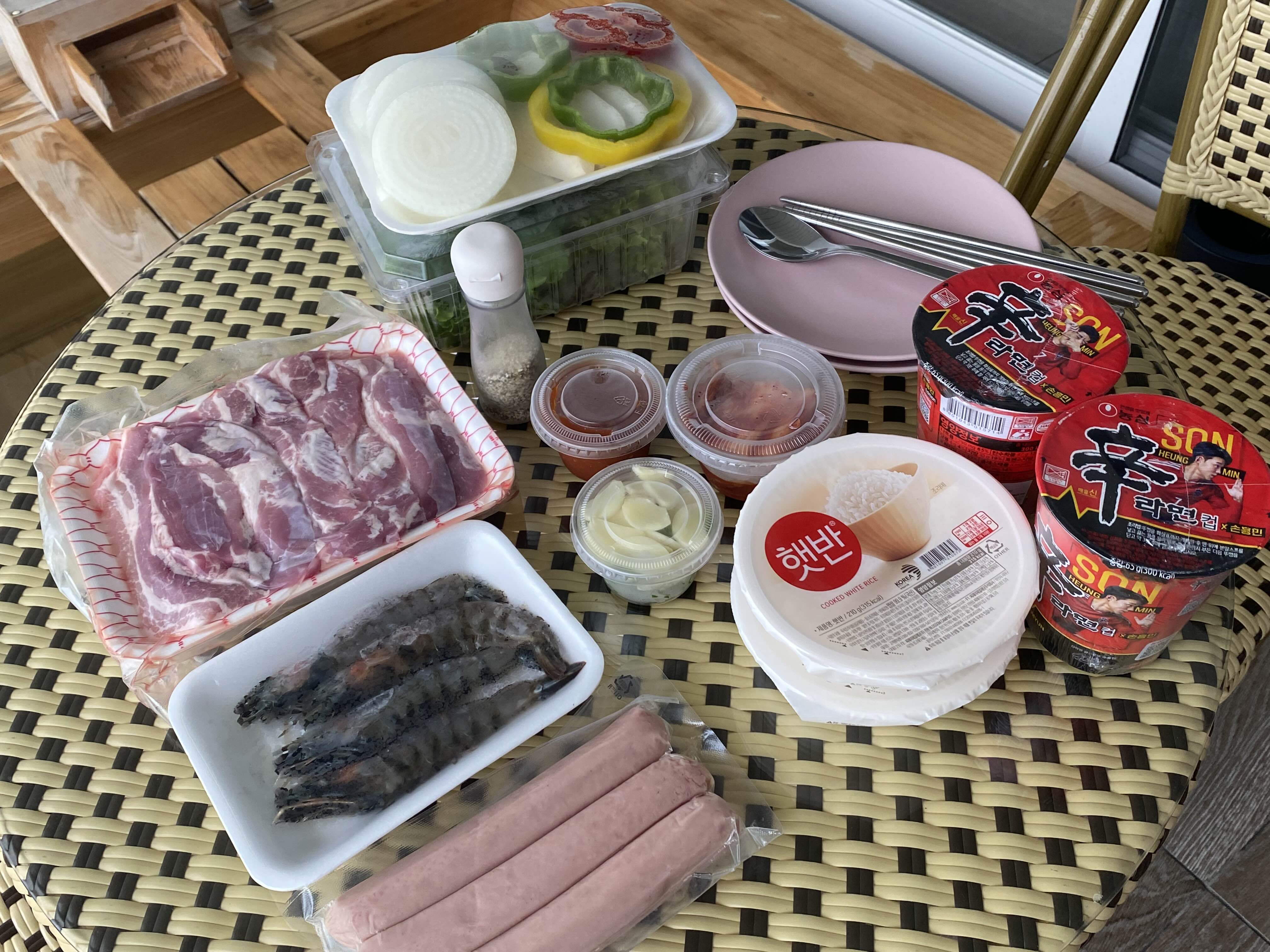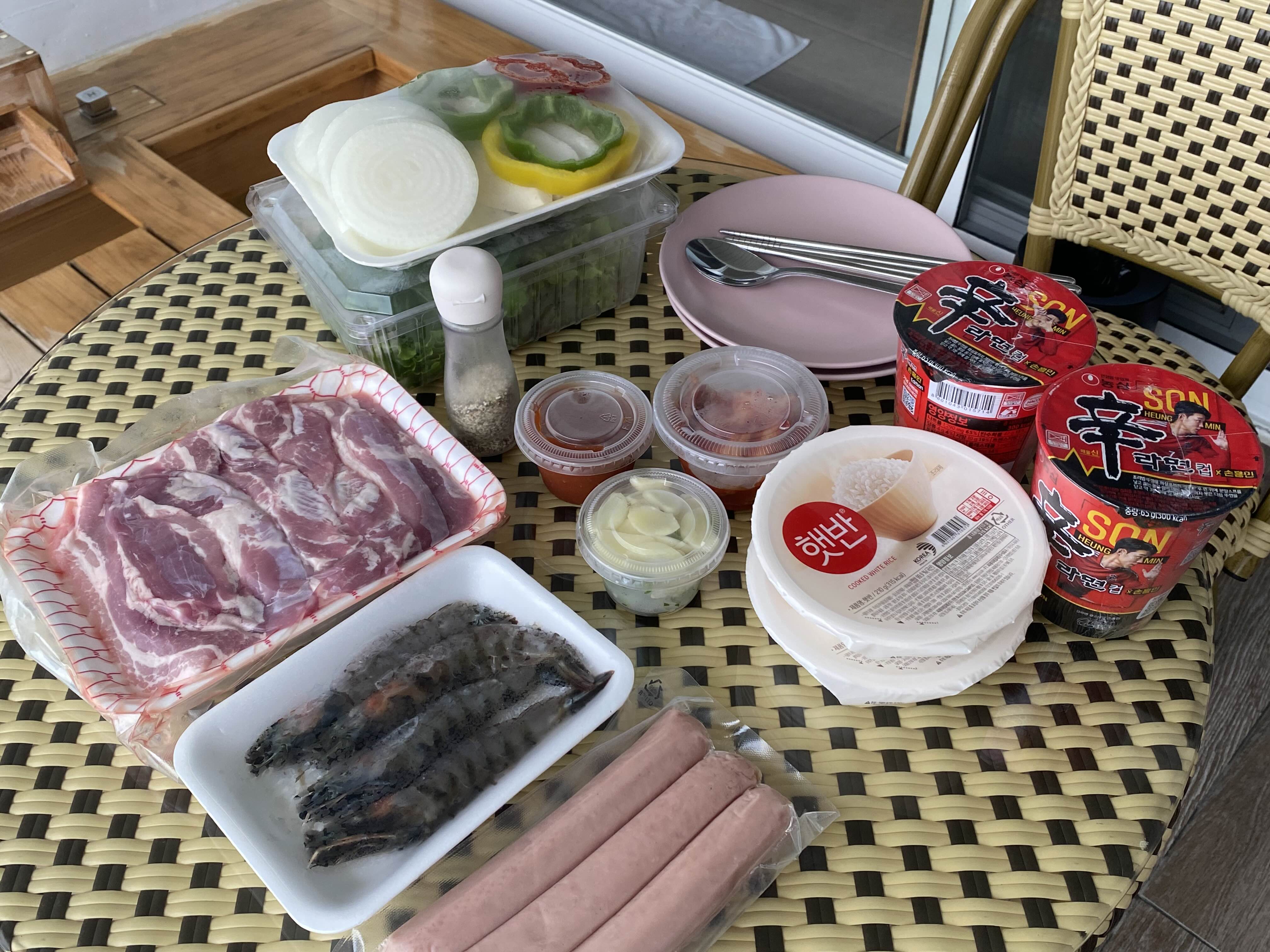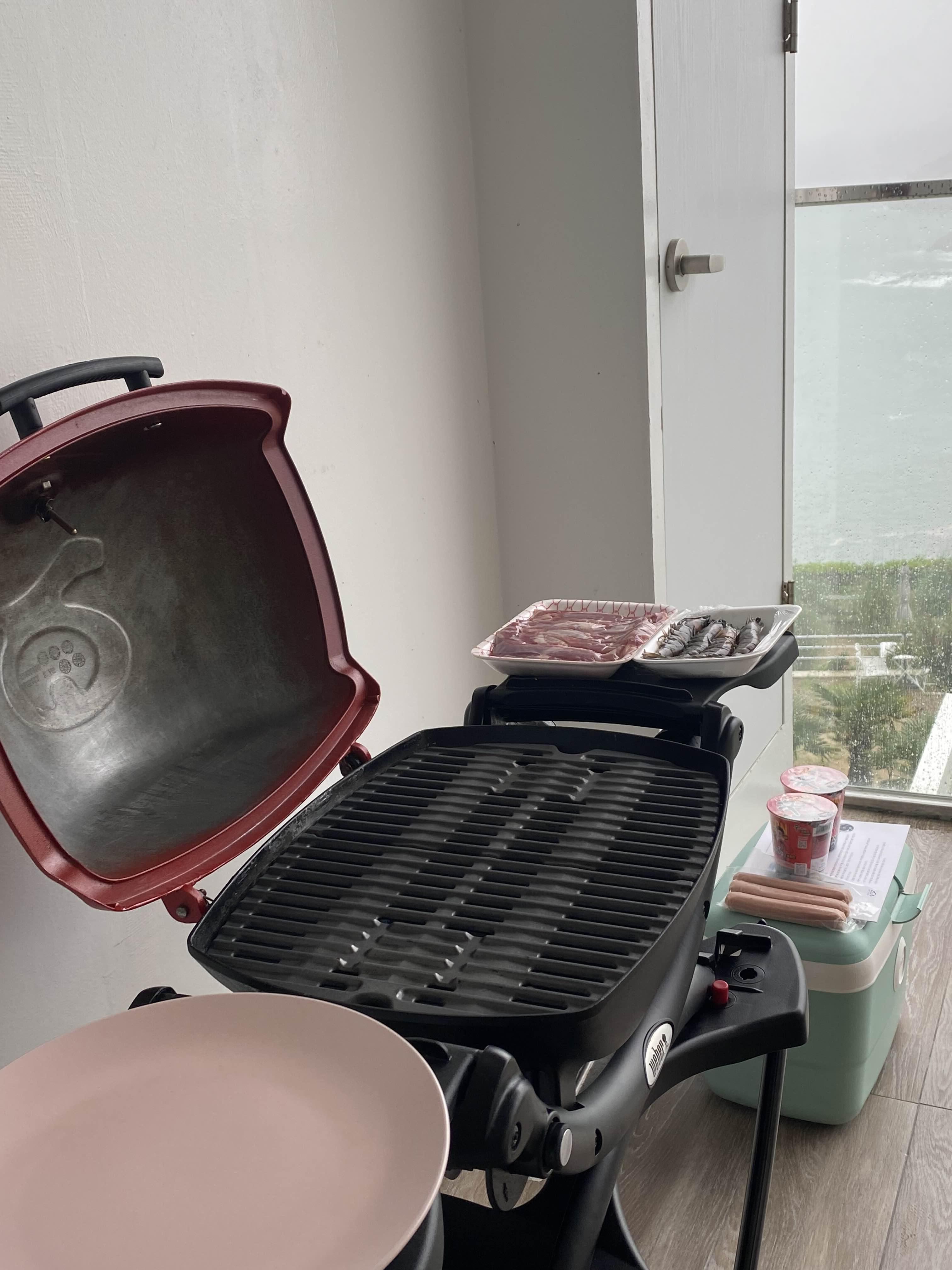 숙소에서 미리 결제해두고 받아온 바베큐 패키지로 베란다 그릴 로망을 실현했거든요!