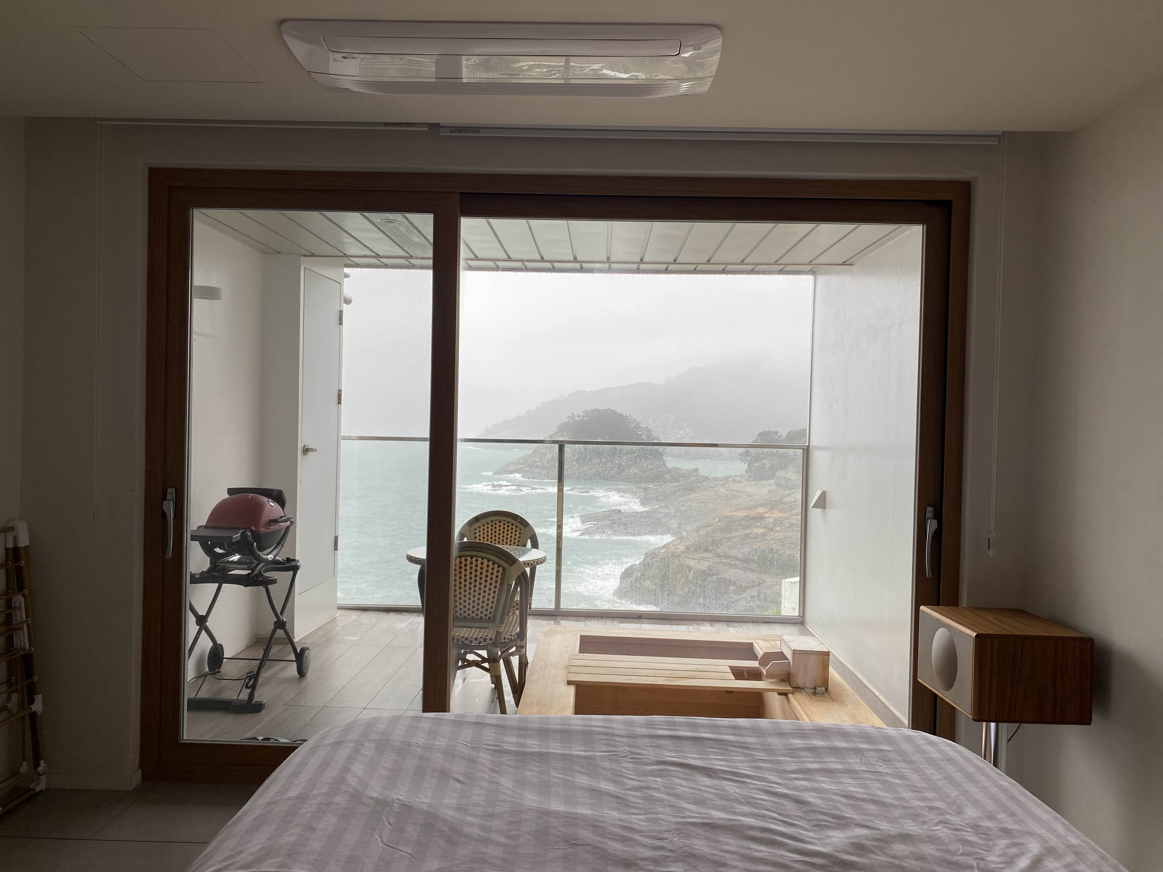 에어컨 보송하게 틀어놓고 침대에 누워서 비오는 바다를 감상하면.. 너무 좋아요..