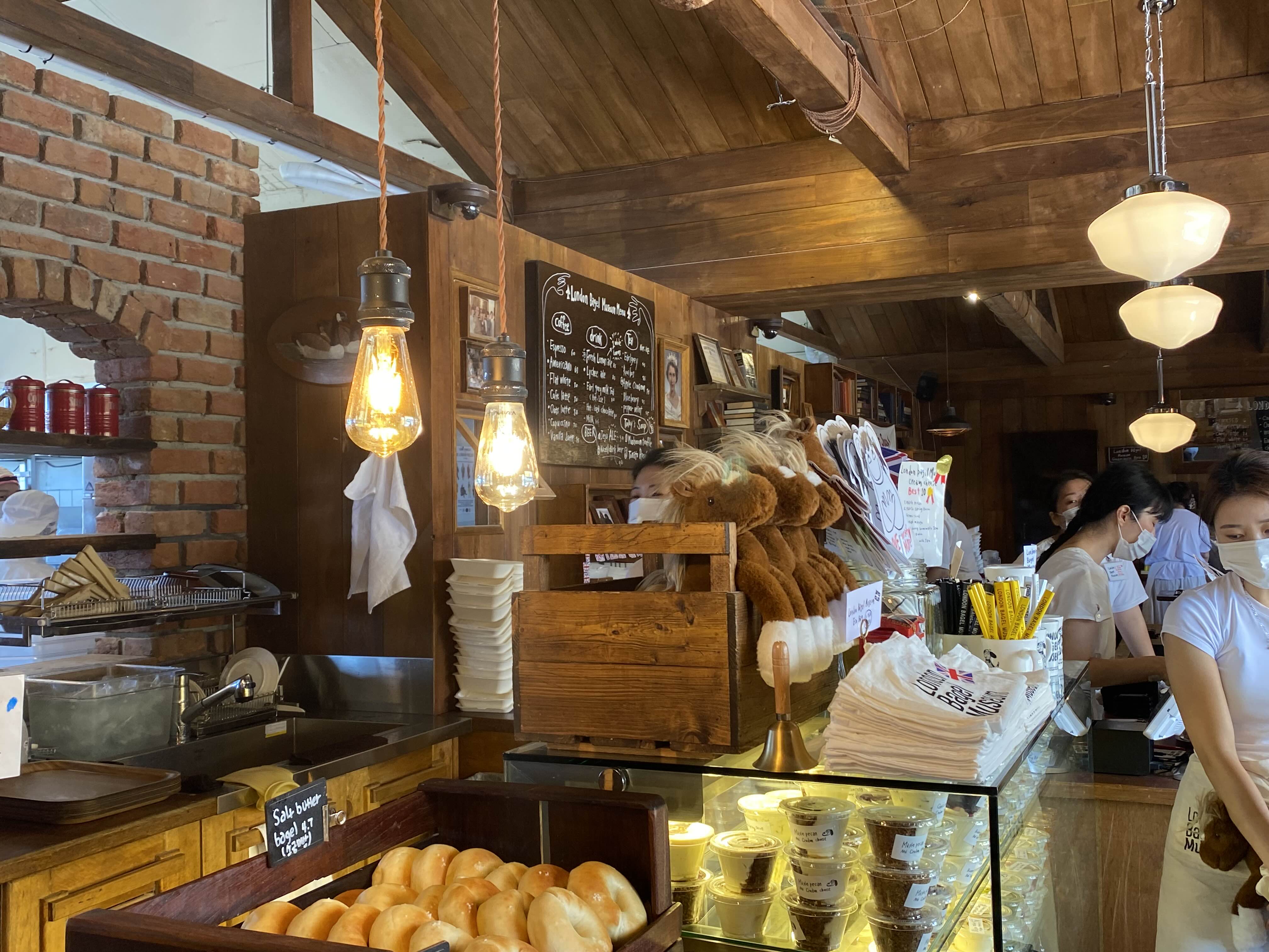 긴 테이블에 여러 팀이 같이 앉는 구조로 되어있었는데, 매장이랑 다르게 취식하는 장소는 지하창고 퀴퀴한 냄새도 나고... 인테리어도 좀 실망스럽더라고요ㅠㅠ.... 그냥 창고방에 사람들 밀어넣고 두고 빵 먹게 하는 곳 같아서... 아쉬웠어요...